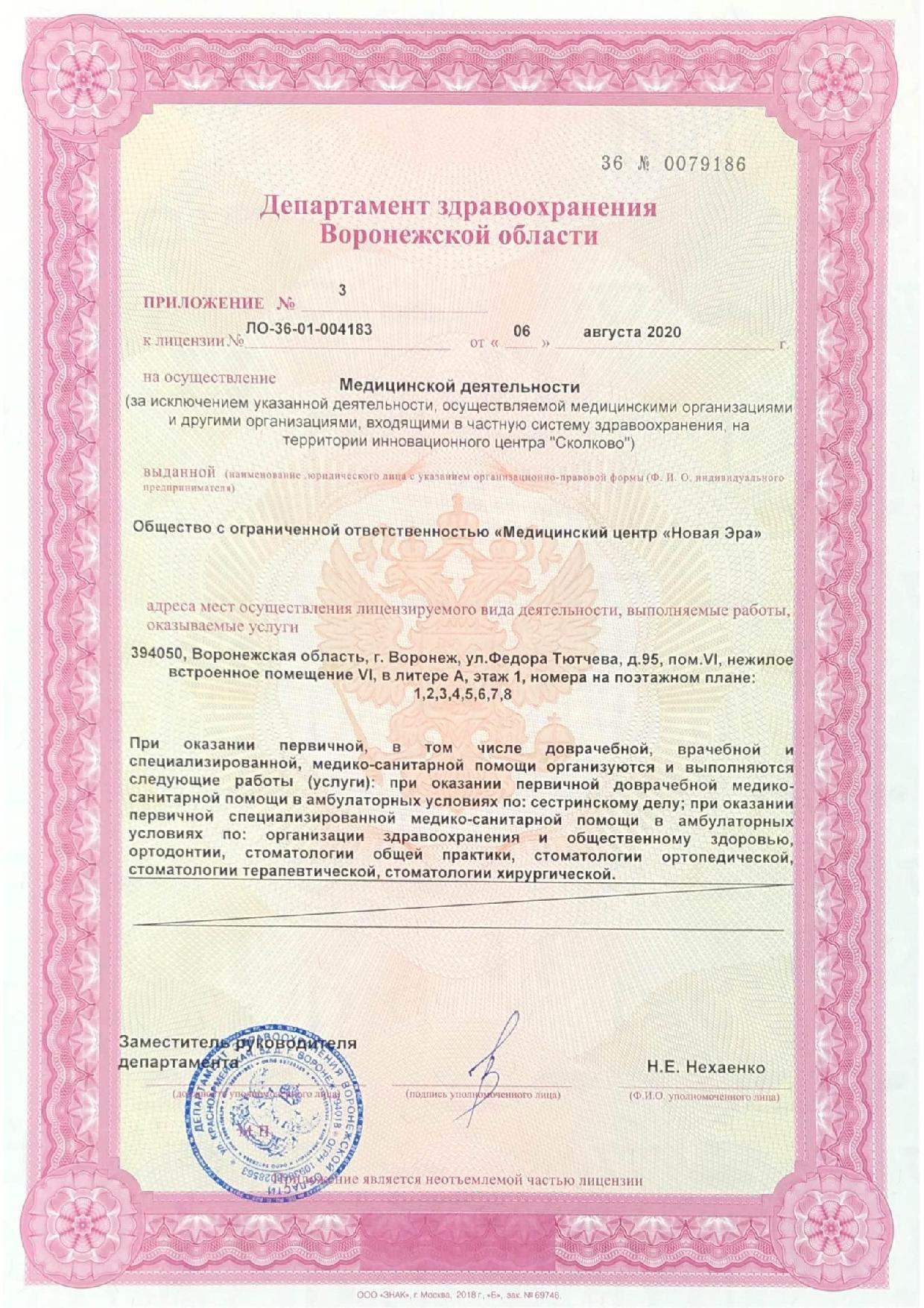 Стоматологическая клиника «Новая Эра» в Воронеже работает с 2010 года и за это время успела завоевать безупречную репутацию у многих пациентов. Наша стоматология оборудована всем необходимым для оказания качественной стоматологической помощи на самом высоком уровне. Это новейшее оборудование для диагностики заболеваний, оборудование для имплантации зубов. У нас работают высококвалифицированные врачи, чуткий и отзывчивый административный и средний медицинский персонал, работа с которыми оставляет только самые приятные воспоминания о посещении клиники. С 2017 года мы стали обслуживать пациентов по полисам ДМС (добровольного медицинского страхования), что позволило клиентам ряда страховых компаний получать квалифицированную стоматологическую помощь в нашей клинике. В основе нашей работы лежит индивидуальный подход к каждому пациенту с предоставлением максимально широкого спектра качественных стоматологических услуг. Даже если Вы не довольны лечением в других клиниках, то приходите к нам и получите совершенно иной уровень услуг и отличный конечный результат. Все процедуры проводятся абсолютно безболезненно с применением качественных импортных анестетиков.