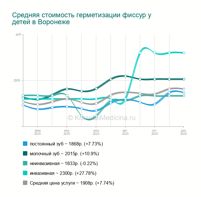Герметизация фиссур ребенку – нанесение специального покрытия на естественные углубления, расположенные между жевательными буграми постоянных или молочных коренных зубов. Осуществляется для предотвращения развития кариеса в труднодоступных для очищения областях. Всего в Воронеже найдено 55 клиник, где выполняют герметизацию фиссур у детей.