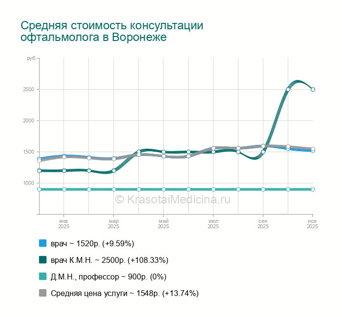 В первичной консультации офтальмолога нуждаются не только пациенты с жалобами на нарушение зрения, боли или дискомфорт в глазах. Часто для осмотра глазного дна (офтальмоскопии) к офтальмологу направляются пациенты с сахарным диабетом, сердечно-сосудистыми и неврологическими заболеваниями. Всего в Воронеже найдено 73 клиники, где можно получить прием офтальмолога.