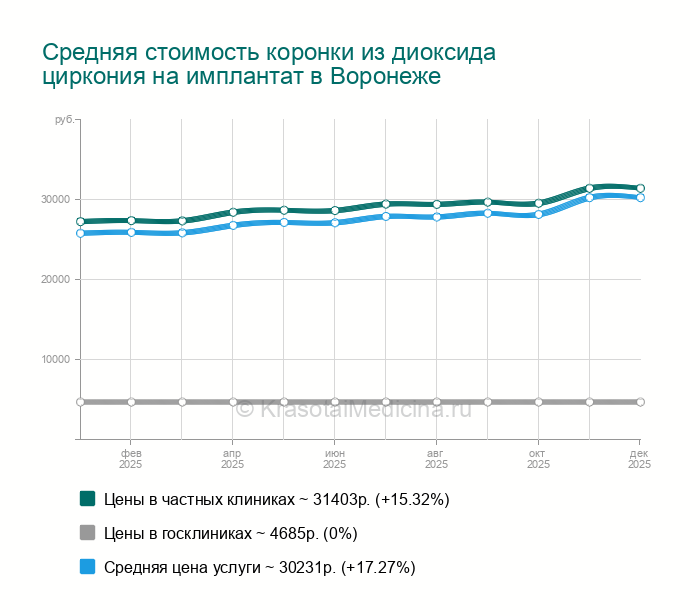 Керамическая коронка на каркасе из диоксида циркония с опорой на имплантат - отличное решение для замены зубов у людей с явлениями гальванизма и непереносимости металла. Внутренняя часть коронки изготавливается из диоксида циркония, близкого по многим свойствам к твердым тканям зуба. Всего в Воронеже найдено 47 клиник, где выполняют коронку из диоксида циркония на имплантат.