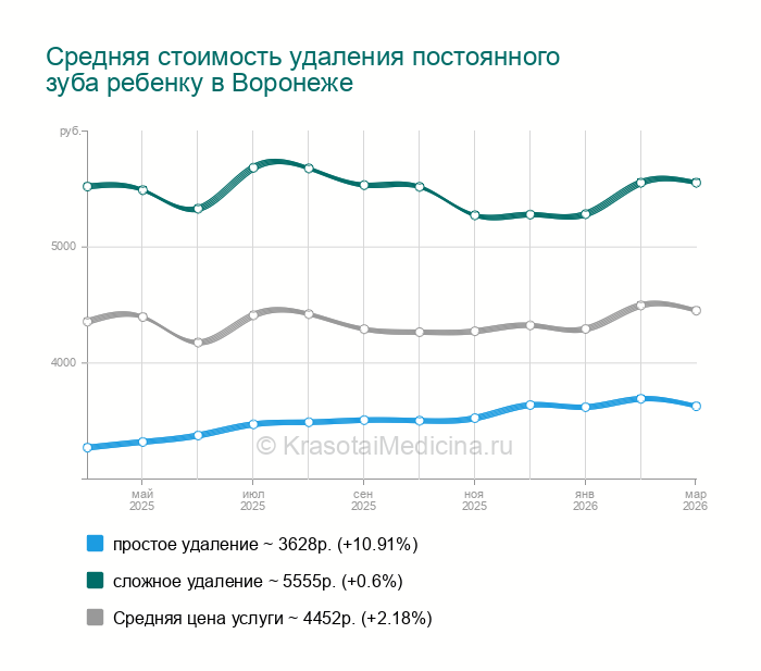 Стоимость удаления постоянного зуба ребенку в Воронеже